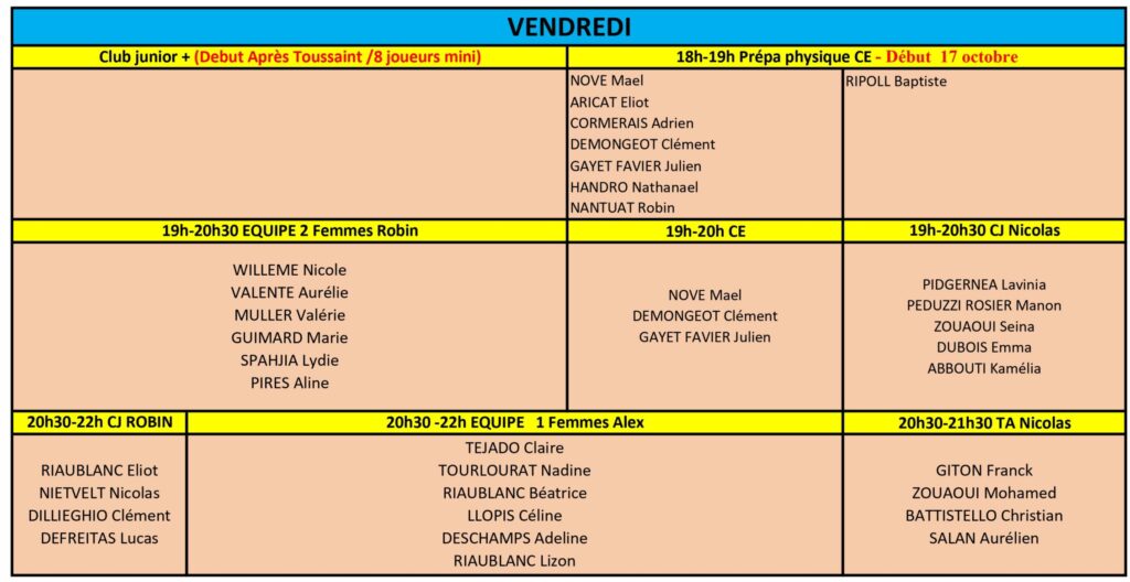 Planning saison 2025-2026